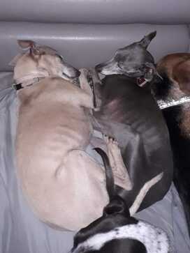 ![]() | Unsere beiden Windspielchen Fips und Flummi, die 2025 bei uns im Alter von 8 und 6 Jahren eingezogen sind aus dem Tierschutz, sind 2024 mit wenigen Monaten Abstand über die Regenbogenbrücke gelaufen. |